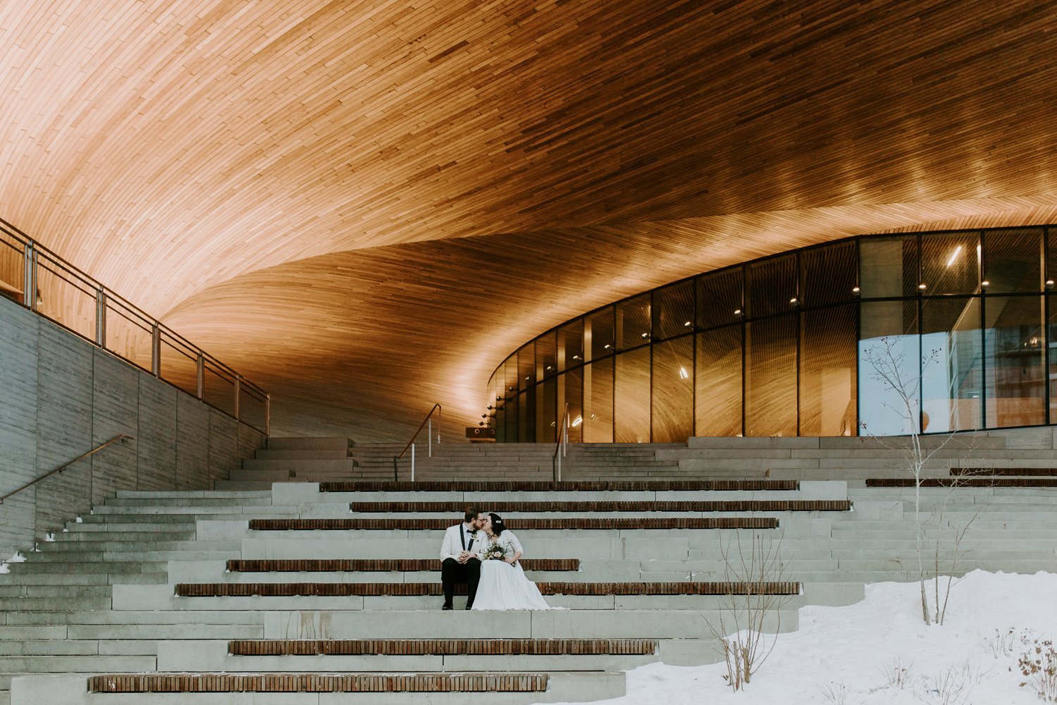 Amy + Steve never imagined that their wedding day in 2022 would be affected by covid, and yet… that sadly wasn’t the case. Nonetheless, these two pushed through and managed to plan a beautiful intimate ceremony with friends and family only a WEEK before their wedding day. Following their ceremony, we raced to catch the last bit of light at one of my favourite locations - the Calgary Central Library. My favourite moment of the day was when their guests surprised them with sparklers (something from their original wedding plans that they had been looking forward to) as we arrived back at the venue after portraits.
